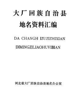 编纂单位:河北省大厂回族自治县地名办公室