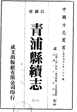 [民国]青浦县续志二十四卷 于定等修 金咏榴等 纂民国二十三年刻本