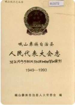 · 峨山彝族自治县人民代表大会志_1994版_PDF电子版下载详细记录了本地的历史、地理、风俗、人物、文教、物产等是广大青少年、海外游子了解家乡、热爱家乡、传承历史文明、建设美好家乡的重要载体和平台的专书。